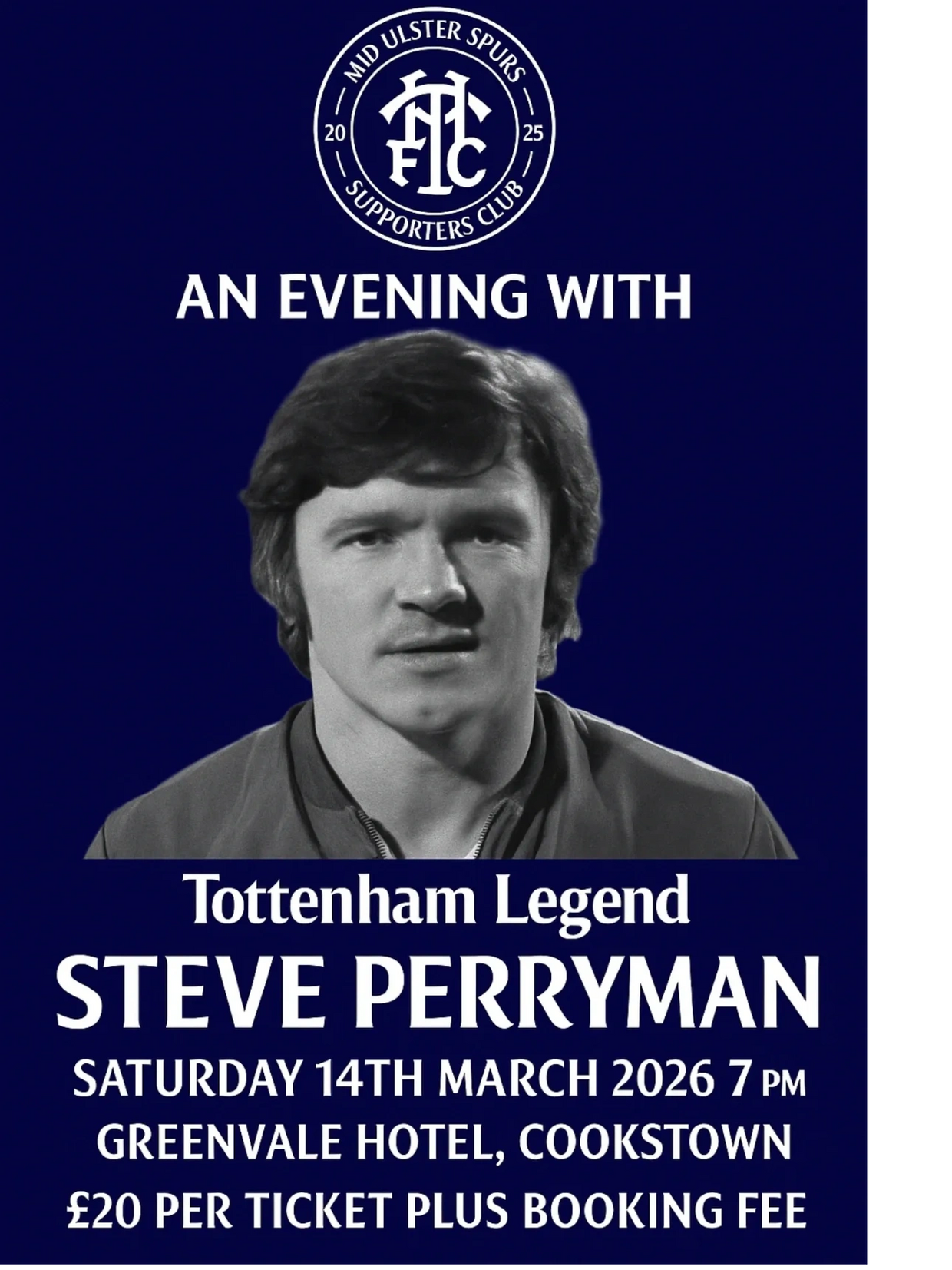 Join us for a special Spurs Legends Night with Tottenham Hotspur icon Steve Perryman, the club’s all-time record appearance holder with an incredible 854 games between 1969 and 1986. A true one-club man, Steve captained Spurs for over a decade, lifting two FA Cups, two UEFA Cups, and two League Cups, and was named Football Writers’ Association Footballer of the Year in 1982.